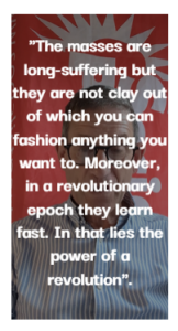 “In the Menshevik-Social Revolutionary bloc, the dominant place belonged to the Mensheviks, in spite of the weight of numbers on the side of the Social Revolutionaries. In this distribution was expressed in a way … the predominance of the city over the rural petty bourgeoisie, and the intellectual superiority of a ‘Marxist’ intelligentsia … [over one which] prided itself on the meagreness of the old Russian history.” [Chapter Twelve of the ‘History of the Russian Revolution’ 22 ]